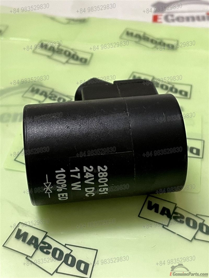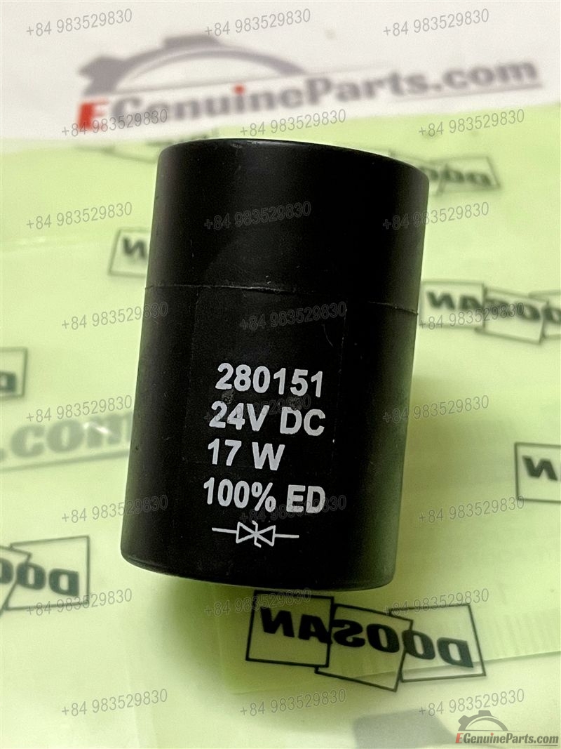 COIL,T/M CONTROL V/V FOR PILOT PIPING - TRAVEL DOOSAN DX140W ACE (CEWAL,DI,DOM) / DX140W-5K / DX160W-5K(S/N:2485~) (CEWAN,DI,DOM) / DX210WA (CEWAE,DI,DOM). 280151 24V DC 17W 100% ED. MADE IN GERMANY.