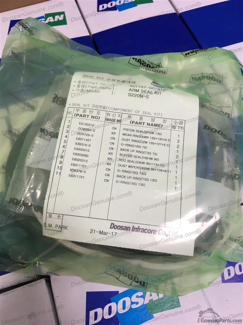 SEAL KIT;ARM CYLINDER FOR ARM CYLINDER - 2m ARM DOOSAN SOLAR 200W-V (HEWM0,DI,DOM) / SOLAR 210W-V (HEWS0,DI,DOM) / SOLAR 220LC-V (HEMR0,DI,DOM) / SOLAR 225LC-V (HEMX0,DI,DOM).