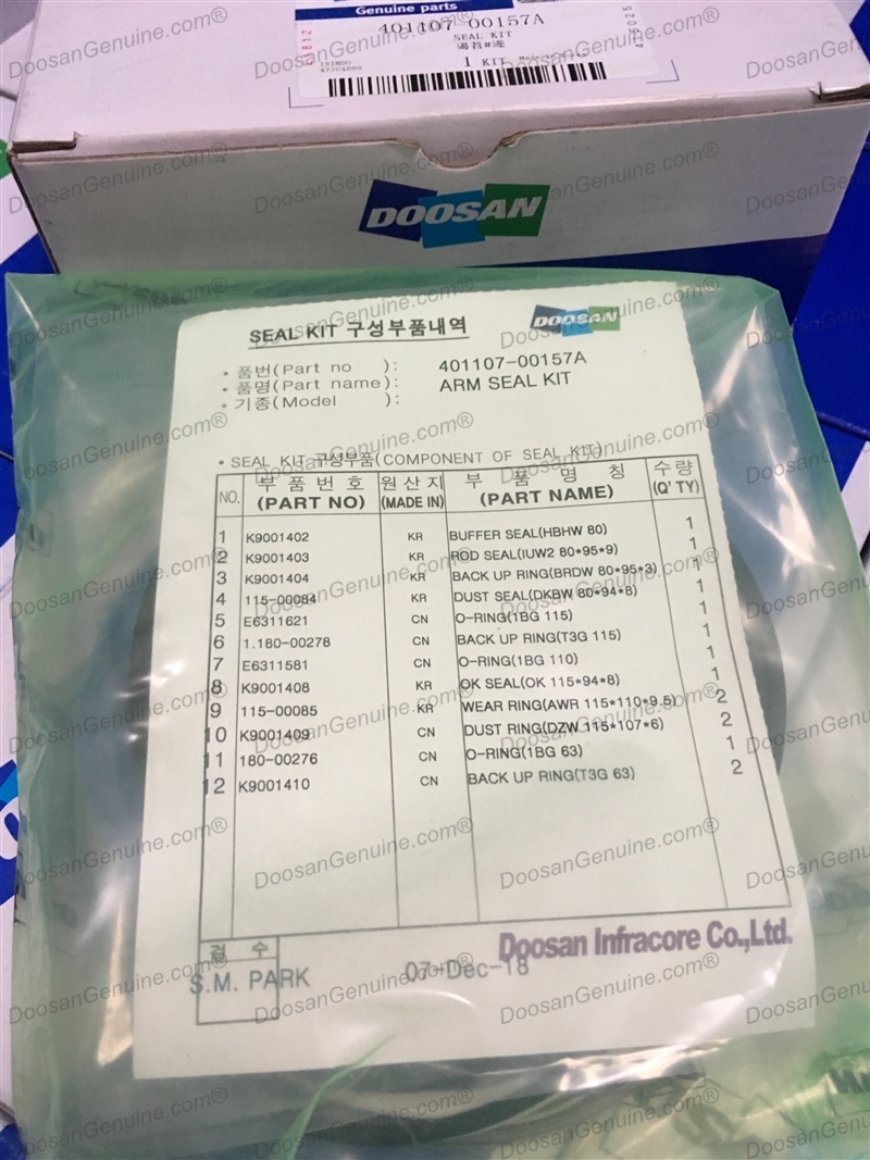 SEAL KIT FOR ARM CYLINDER(BOOM 4.6m) DOOSAN DX140LC-5 (CEBBR,DI,DOM) ~ DX140W-5K / DX160W-5K(S/N:2485~) (CEWAN,DI,DOM)