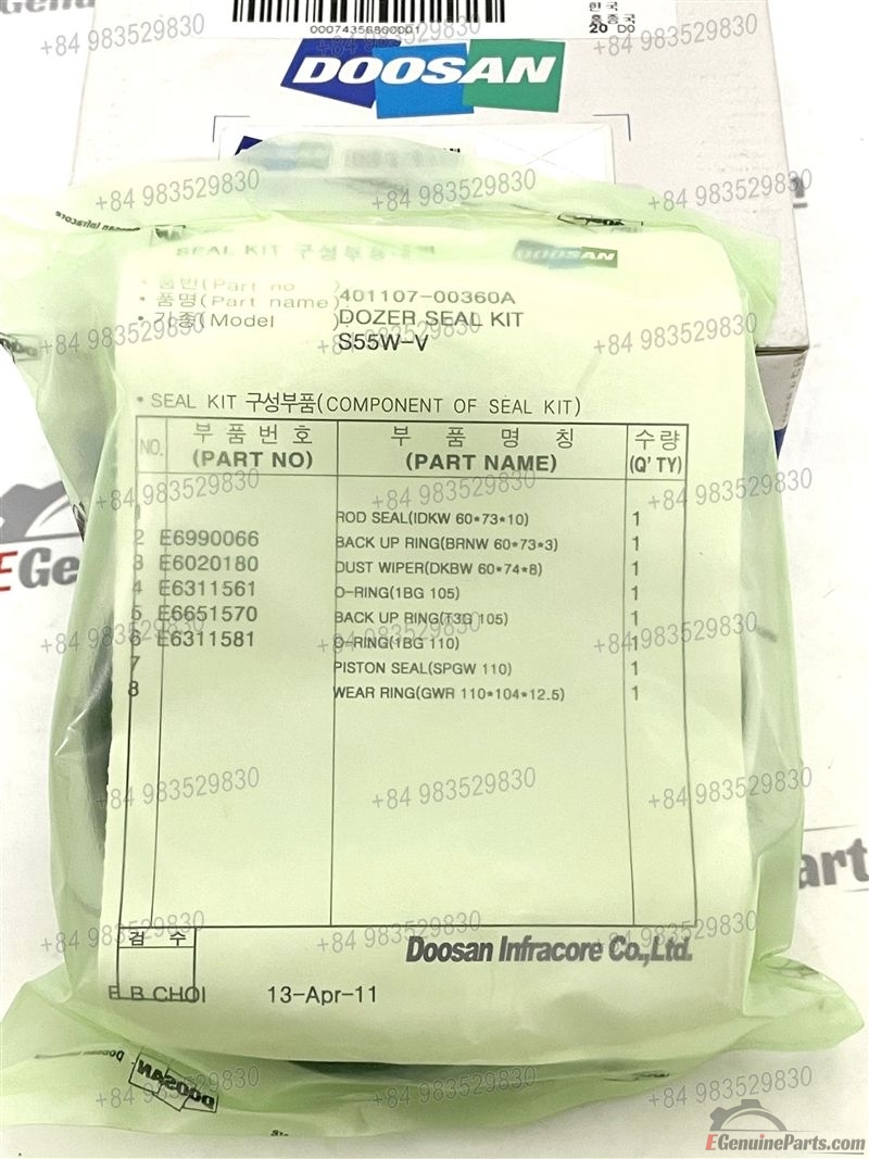 SEAL KIT;DOZER CYLINDER FOR DOZER CYLINDER DOOSAN SOLAR 55W-V / SOLAR 55W-V SUPER / SOLAR 55W-V GOLD PLUS (HEWU0,DI,DOM).