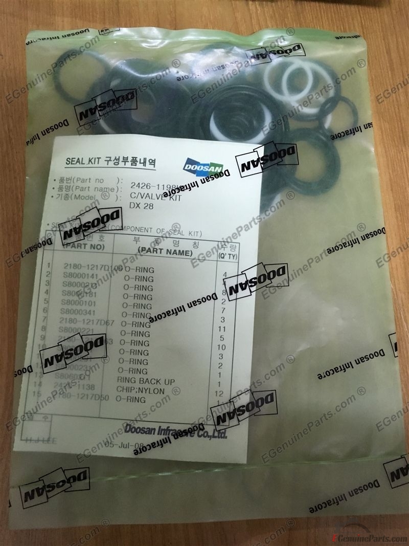 SEAL KIT FOR CONTROL VALVE DOOSAN SOLAR 200W-V (HEWM0,DI,DOM) ~ SOLAR 360LC-V (HELR0,DI,DOM).