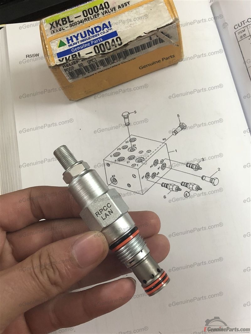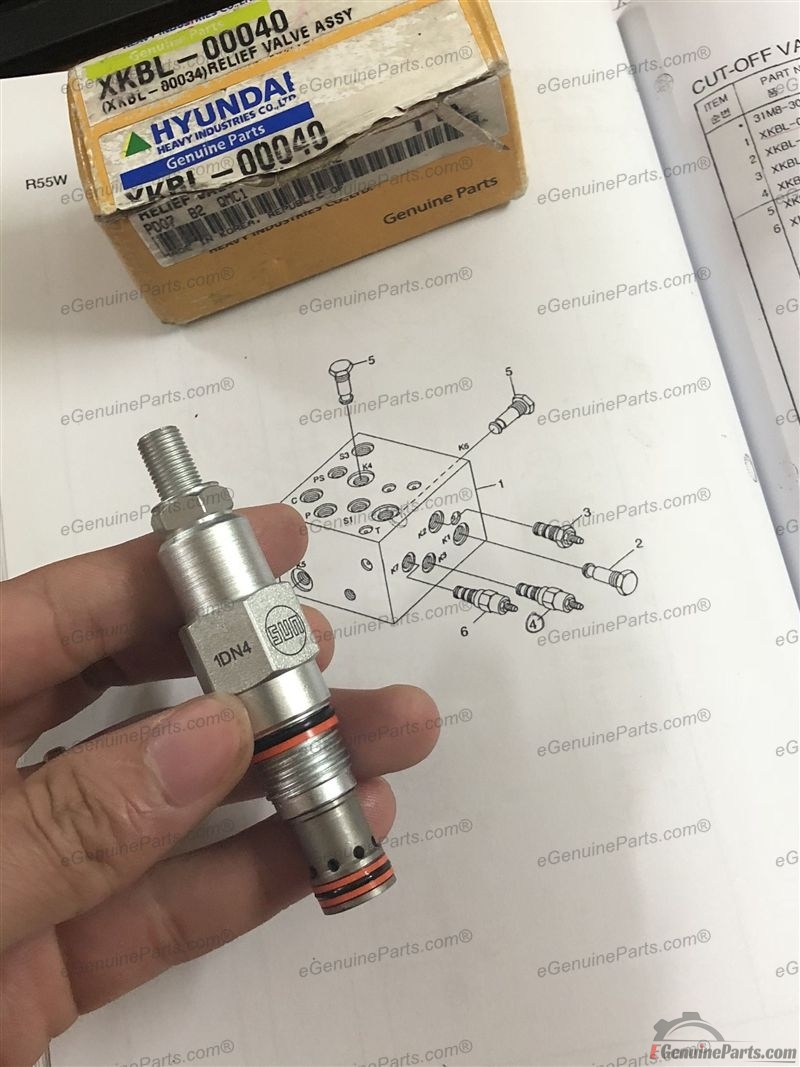 XKBL-00040. RELIEF VALVE ASSY FOR SOLENOID VALVE HYUNDAI R17Z-9A ~ R35Z-9A / FOR CUT-OFF VALVE HYUNDAI R55W-7A ~ R60W-9S. (RPCC LAN)